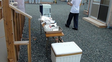その後、南相馬市鹿島区の牛河内第一、第四応急仮設住宅区内の集会所にてボランティアバザーを行い、同時にかき氷を振舞いました。 また、福島民報(福島県最大の地方紙)の方の取材を受けることもございました。