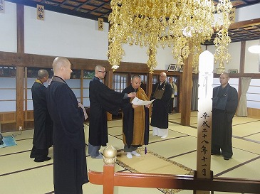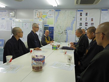 平成28年11月1・2日、 群馬県曹洞宗青年会のボランティア委員会が中心となり平成23年の東日本大震災で被害にあった南相馬へボランティアに行ってまいりました。 先ず、福島市にある曹洞宗宗務庁の復興支援分室に伺わせて頂きました。ご多忙中、久間老師がお迎えしてくださり、現在の状況などの説明を賜わりました。 引き続き、南相馬市の新祥寺様へ移動。慰霊法要を勤め、その後、野田副住職よりお話を頂きました。 また、同寺が預かり慰霊されている東日本大震災物故者のご遺骨に対し、皆で焼香させて頂きました。 翌2日は群馬県曹洞宗青年会及び曹洞宗福島県青年会有志14名によるボランティア作業。 南相馬市小高町ボランティアセンターに伺い、作業をいたしました。 今回は、福島県青年会様がセンターの引越し解体作業を、群馬県青年会が塚原公会堂での作業をさせて頂きました。 公会堂には、同地区で亡くなられた方々の慰霊碑もあり、始めに慰霊法要を勤めた後、作業をいたしました。